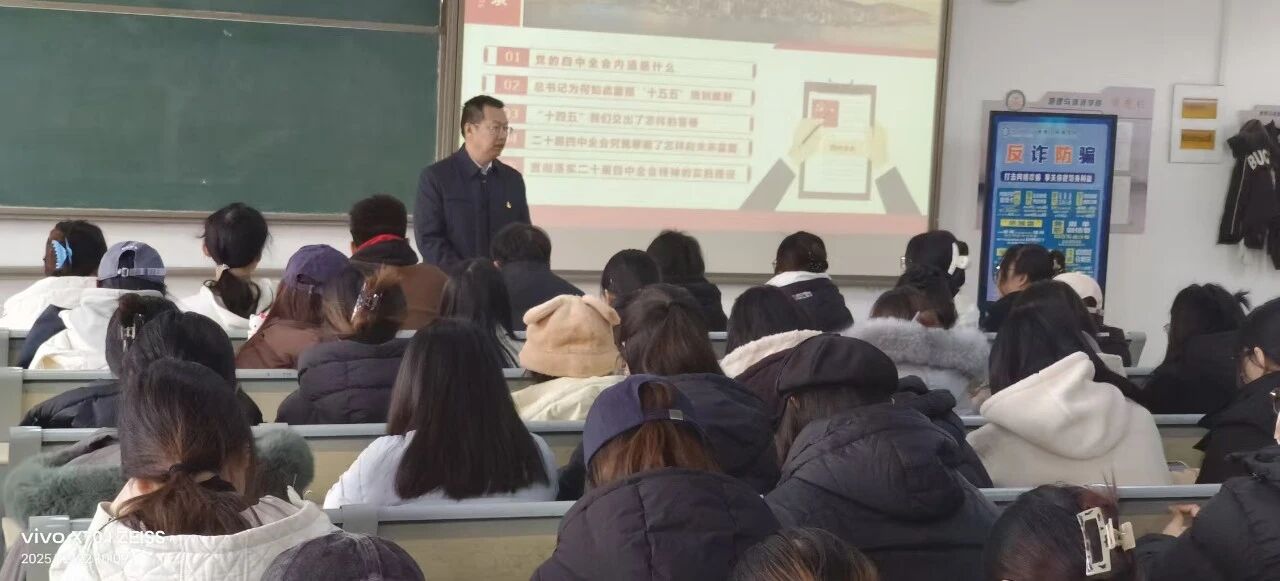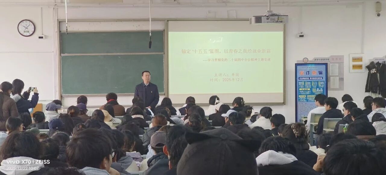为深入学习贯彻党的二十届四中全会精神,引导毕业生树立正确的就业观、择业观,12月22日上午,太阳成集团tyc33455面向毕业生党员及学生代表举办了一场题为《锚定“十五五”蓝图,以青春之我绘就业新篇》的主题党课。党课旨在引导学生将个人理想融入国家发展大局,在新时代找准职业方向,走稳走实就业之路。