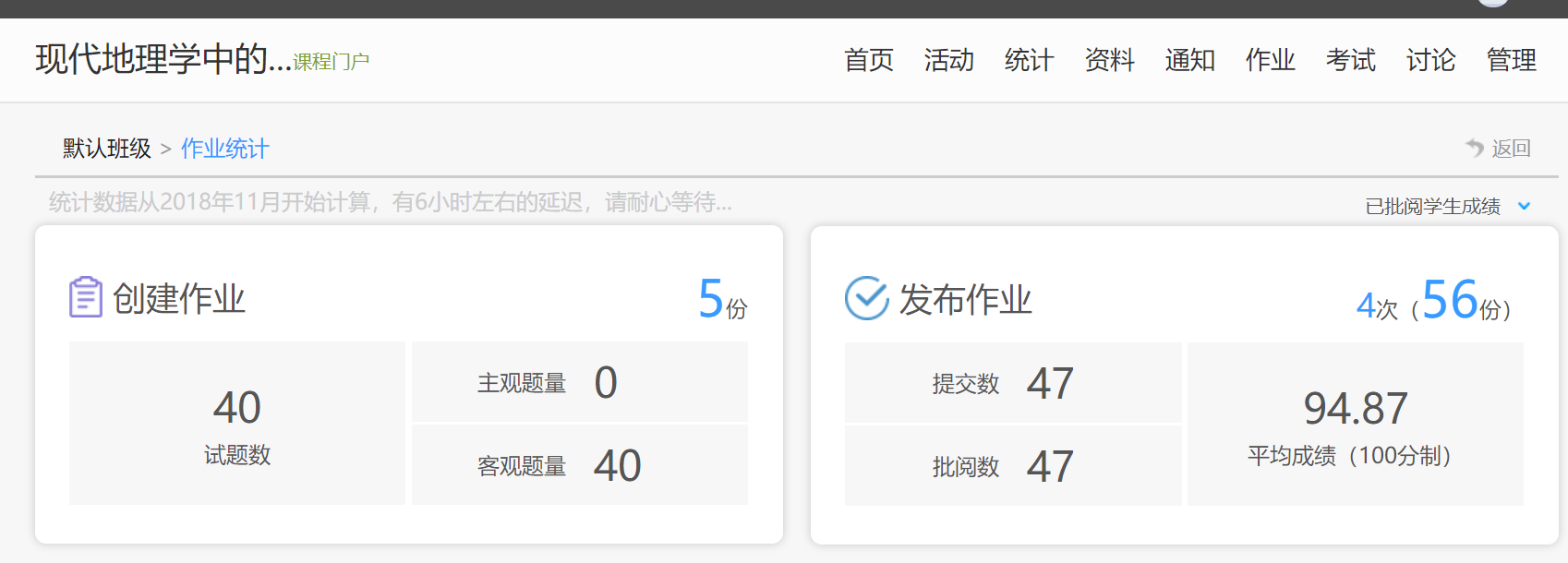 2、学生学习的积极性比较高,全部学生都进行了课件和视频的学习,前三周的作业也全部完成(图4),而且作业的正确率平均达到了接近95,表面所有同学都学会弄懂了学习内容。