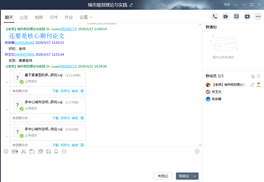 把课件内容转移到太阳成集团tyc33455cc网络教学线上平台上,在规定上课时间一边观看课件内容,一边通过QQ语音授课。课堂时间的结尾部分,提出一个与本次授课内容相关的问题,让学生们课后去搜集相关文献资料查找问题的答案。