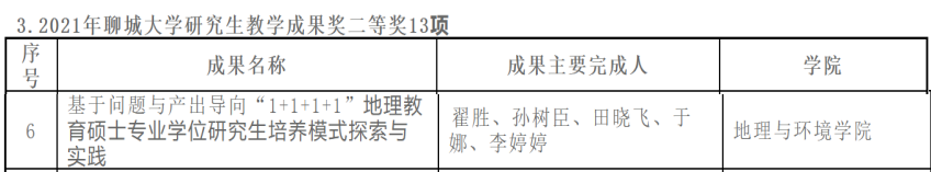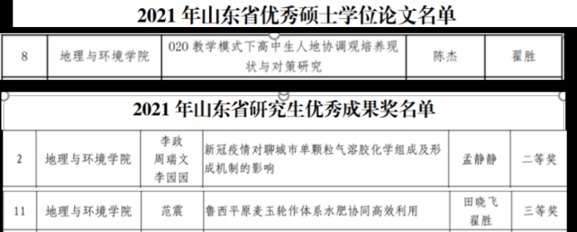 6、2021年10月,我院研究生荣获山东省2021年研究生优秀硕士学位论文1篇、优秀成果二等奖、三等奖各1项,取得历年来最好成绩,在全校名列前茅。