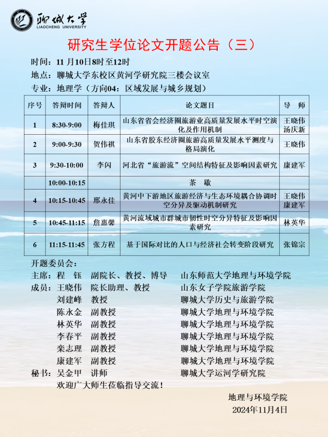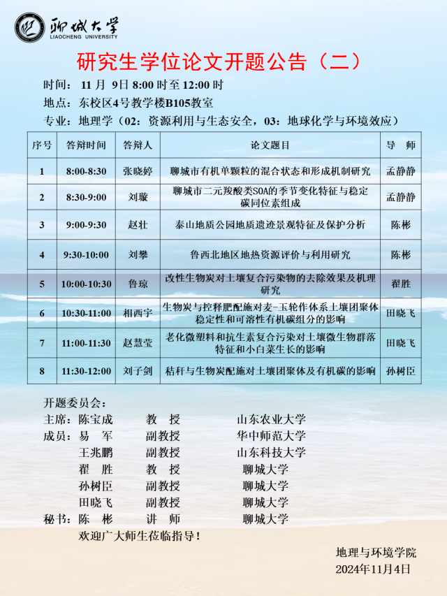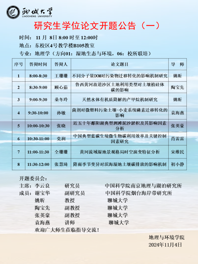 地环学院2024年研究生学位论文开题公告(一)