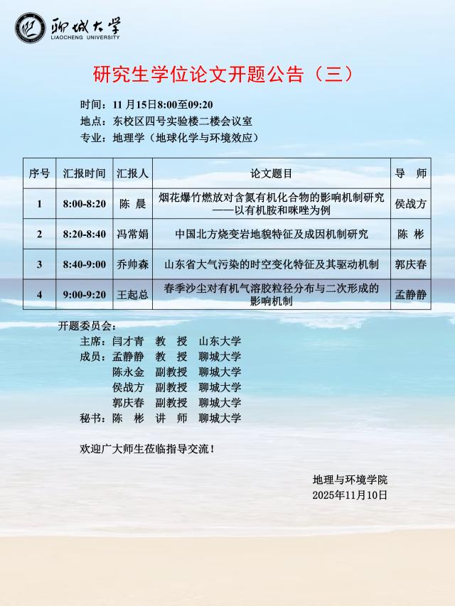 太阳成集团tyc33455 研究生学位论文开题公告(三)