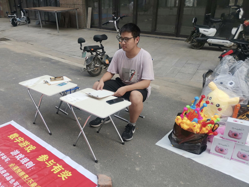 志愿者深入基层,在观察街头小商贩经济活动的同时身体力行,体验以“数字游戏”为主题的摆摊活动,并详细统计每天的收益情况,这种自负盈亏的经营模式让志愿者真切地感受到赚钱的不易。通过自己制定销售方案,向客人推销,平衡收入与支出,同时以日记的形式记录每天摆摊的感悟,志愿者对地摊的经营模式已经有了大致的了解和适应。在工作之余,志愿者还调查了周围街区的摊位数量,并以发放调查问卷的形式收集了相关数据。据统计,摊位连续三天的总收入为19元、22元、15元,康庄夜市共有套圈游戏3家,卖衣服4家,小池钓鱼一家,当地客流量较大,且主要集中在晚上。