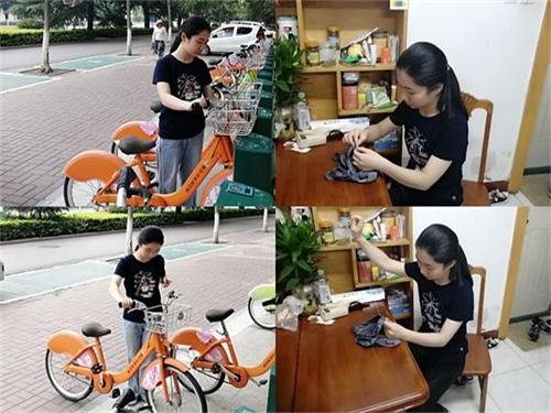 传承绿色文化,践行环保生活,志愿者们扎根实践,积极投身到环保生活中,以绿色出行为主、实践创新为辅,积极展现“绿水青山比不上金山银山”的环保理念。他们向居民详细介绍了绿色出行的概念,呼吁其从身边小事做起,做到绿色出行,提升其爱护环境、低碳生活的责任感和使命感。“纸上得来终觉浅,绝知此事要躬行”,志愿者们于实际行动中将知识贯通,出行时选择共享单车而放弃汽车,利用身边的旧衣服、针线等物品制作环保垃圾袋以避免外出时随手乱扔垃圾。一针一线系真意,低碳环保任我行,垃圾袋制作过程由裁剪到缝制,志愿者们积极动手、亲力亲为,针线在旧布中穿梭,完美组合成了一件既环保又不失美观的环保手制垃圾袋,积极展现了其敢于创新、勇于实践的良好精神风貌。