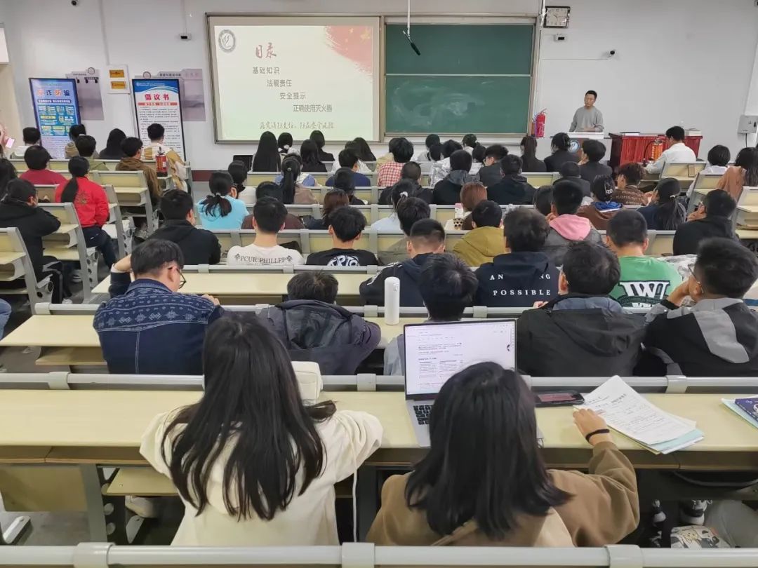 本次消防安全培训活动分为消防安全意识培养和灭火器使用演练两部分。活动开始时,来自学校保卫处的秦正良、马国栋、马飞等老师从基础知识、法规责任、安全提示等方面出发,对近年来发生在高校的火灾案例进行了生动的讲解,强调了消防安全的重要性。同时,马国栋向同学们介绍了如何检查消防安全隐患,如何培养“四个能力”等内容,与同学们分享了实用的防火知识和应对策略,呼吁同学们充分重视并积极参与消防安全的防护工作。
