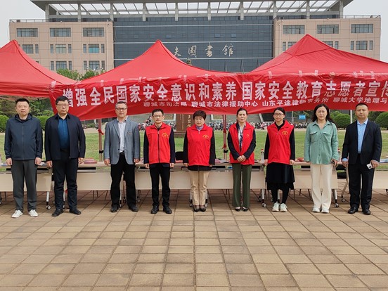 2023年4月15日,在第八个全民国家安全教育日,我院联合聊城市司法局、聊城市法律援助中心、山东平途律师事务所进入我校开展国家安全教育宣传活动。司法工作者通过主题宣讲、发放材料、法律咨询等形式向同学们普及国家安全相关法律法规知识,增强同学们的国家安全意识。