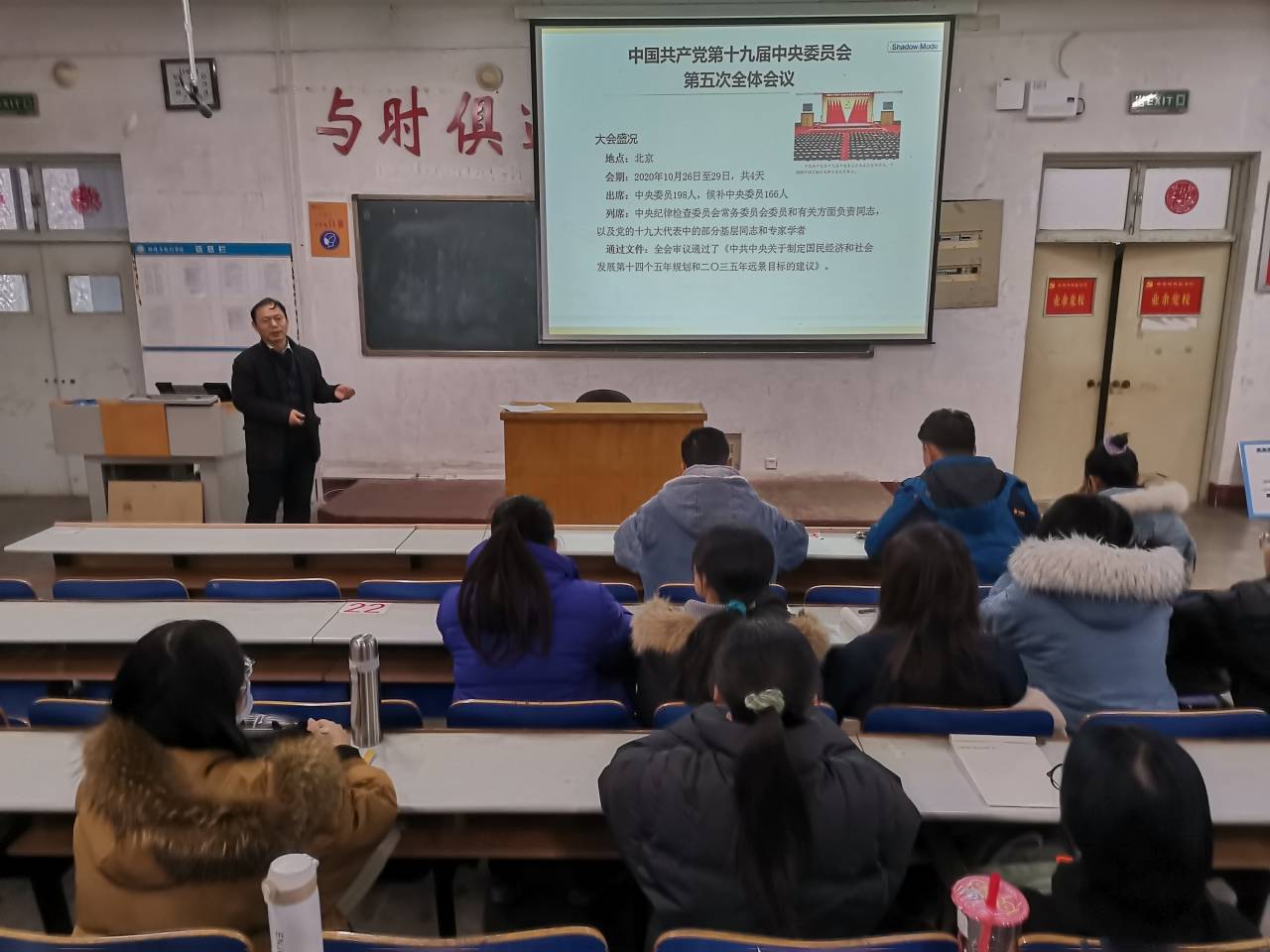 为深入学习党的十九届五中全会精神,提高青年学生的政治思想觉悟,12月3日,环境与规划学院于东校区4#A203召开了党的十九届五中全会精神解读党课,环境与规划学院副院长董杰担任主讲人,学院全体入党积极分子、党员参与了此次学习,党课由辅导员孔亚主持。