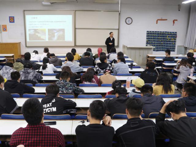 报告中,陈永金从诗歌与地理的定义、新时代育人要求和古诗词中的地理知识三个方面深入浅出地讲述了诗歌与地理知识的关联。立足于新时代学科交融理念,陈永金以“客舍青青柳色新”“日照香炉生紫烟”等著名诗句开篇,从诗歌与地理的定义讲起,佐以《易经》和《毛泽东诗选》中“仰观天文,俯察地理”与“诗者,志之所之也”等知识,深入解读诗歌背后的地理学相关知识。以“牧童遥指杏花村”为例,陈永金通过诗句详细分析了杏花村的具体位置,就汾阳和池州两个地方的气候特点进行比较解读。最后,陈永金强调,大学生应有目标意识和创新意识,他鼓励同学们拓宽视野,激发个人创新潜质,充分汲取不同学科营养,积极发掘传统文化中的宝藏,提升个人人文素养。