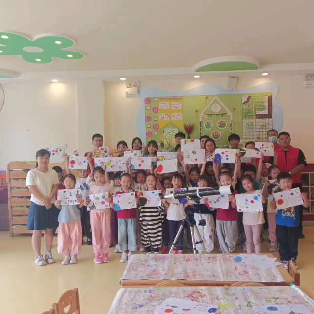 志愿者通过向小朋友们讲解基础的天文知识,现场组装望远镜并观测等环节,使小朋友们了解学习到课程之外的天文知识,让小朋友们认识到宇宙之广大,世界之多彩,激发小朋友们对天文的好奇心,学习天文知识,拓宽视野。同时,志愿者帮助小朋友们一起绘画创作,将学习到的天文知识以绘画的形式呈现,用新颖童趣的作品表达了小朋友们的热情和喜爱。