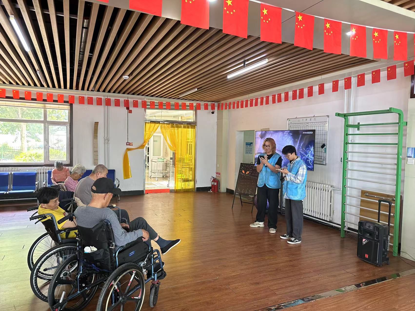 活动当天,大学生志愿者们带着精心准备的慰问品和满满的爱心,早早地来到了鲁西养老院。他们与老人们亲切交谈,询问他们的身体状况和生活情况,用实际行动表达了对老人们的关心和尊重。为了丰富老人们的精神文化生活,志愿者们还准备了丰富多彩的文艺节目。为老人们表演才艺从而丰富老人们的日常生活。除了文艺演出外,志愿者们还积极参与了养老院的日常志愿服务工作。在活动过程中,实践队员们还与养老院的工作人员进行了深入的交流和分享。同时,志愿者们还分享了自己的学习经历和成长感悟,与老人们共同度过了一个难忘的时光。