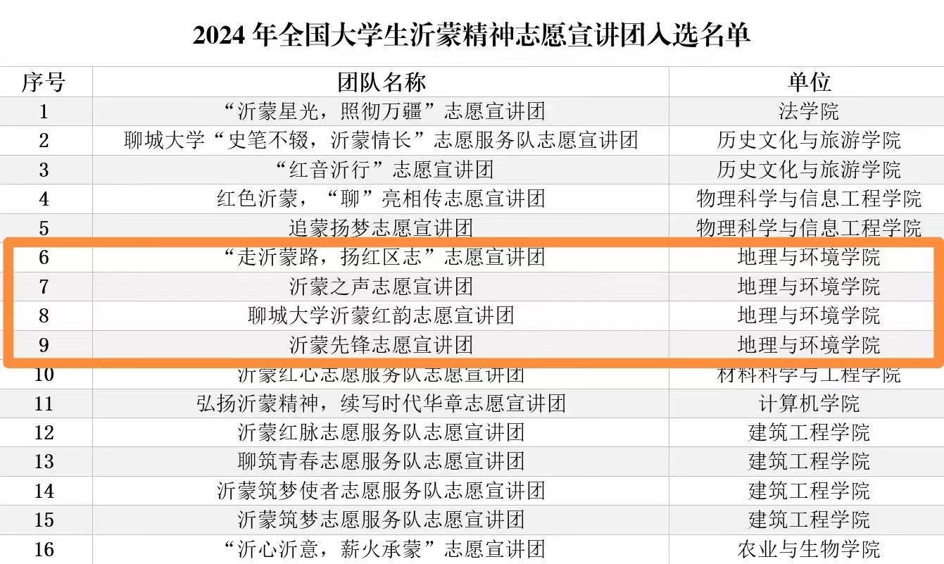 我院“走沂蒙路,扬红区志”志愿宣讲团、“沂蒙之声”志愿宣讲团、“太阳成集团tyc33455cc沂蒙红韵志愿宣讲团”以及“沂蒙先锋志愿宣讲团”4支志愿服务团队成功入选2024年全国大学生沂蒙精神志愿宣讲团。自遴选公告发布以来,学院团委积极进行宣传动员,组织开展申报工作,各志愿服务团队严格按照服务计划,匠心设计宣讲形式,精心准备宣讲内容,不断挖掘沂蒙精神的深刻内涵。