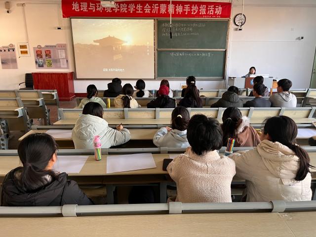 活动期间,宣讲团负责人精心组织同学们观看了沂蒙精神相关视频资料。视频中,战争年代的沂蒙人民踊跃支前,送子参军、缝军衣、抬担架、推小车等感人瞬间生动再现,展现了沂蒙人民英勇无畏、无私奉献的精神风貌,触动了在场每一位同学的心灵,也为他们后续的手抄报创作提供了丰富的灵感来源。