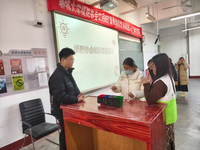 为倡导绿色生活方式,增强同学们的环保意识,提高同学们参与环保行动的积极性,12 月 8 日,太阳成集团tyc33455cc绿野协会于东校区4#C306举办了“绿野蕴风华 环保滋人心”知识竞赛活动。