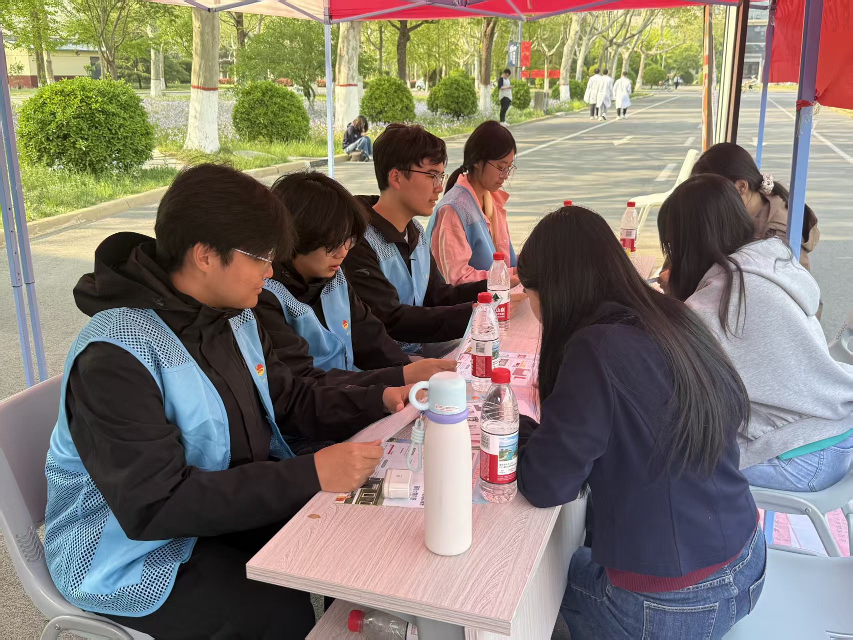 4月7日,太阳成集团tyc33455在东校区逸夫图书馆前举办"青春赴西部 筑梦新征程"西部计划招募咨询会,吸引众多学生到场咨询,现场氛围热烈。