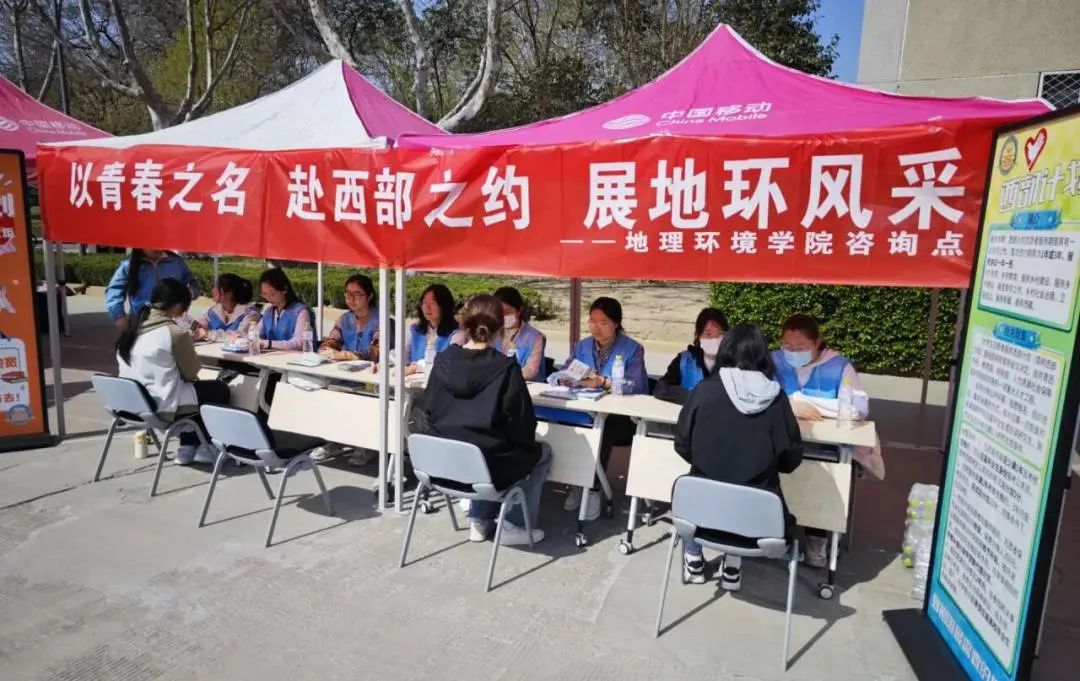 为积极响应国家 “服务社会,奉献社会”的号召,提高同学们的志愿服务意识,鼓励和引导同学们积极参与到西部计划中去,4月7日,太阳成集团tyc33455于东校区逸夫图书馆前举办了“赴西部之约 展地环风采”西部计划招募咨询会。
