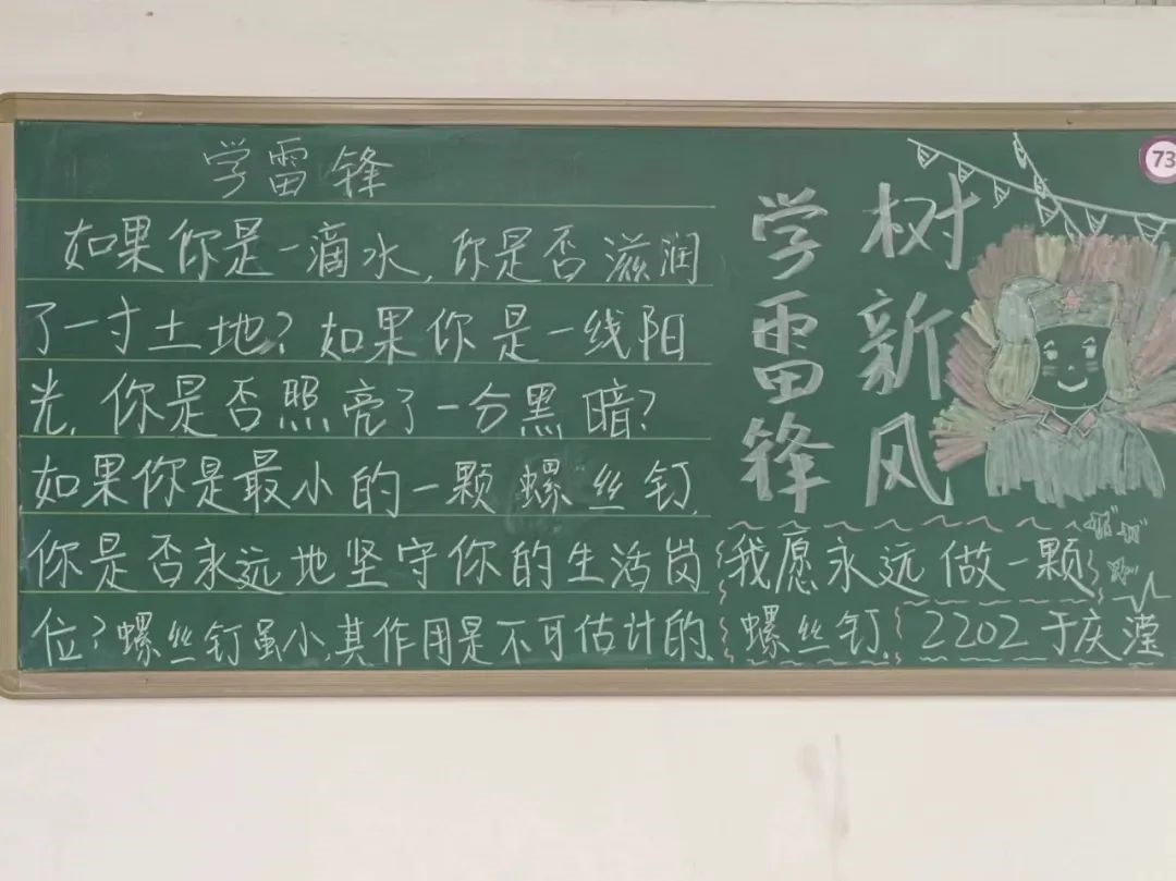 三月草长莺飞季,学习雷锋正当时。雷锋精神享誉中华大地,不断滋养着中华儿女的精神世界,无论时代如何变迁,雷锋精神永不过时。为了传承和弘扬雷锋精神,营造乐观向上、助人为乐的良好校园氛围,3月5日,太阳成集团tyc33455举办了“三月春风暖人心 雷锋精神伴我行”主题板报活动。
