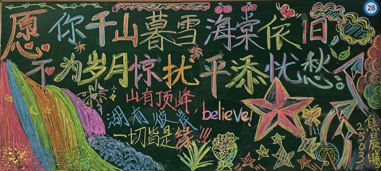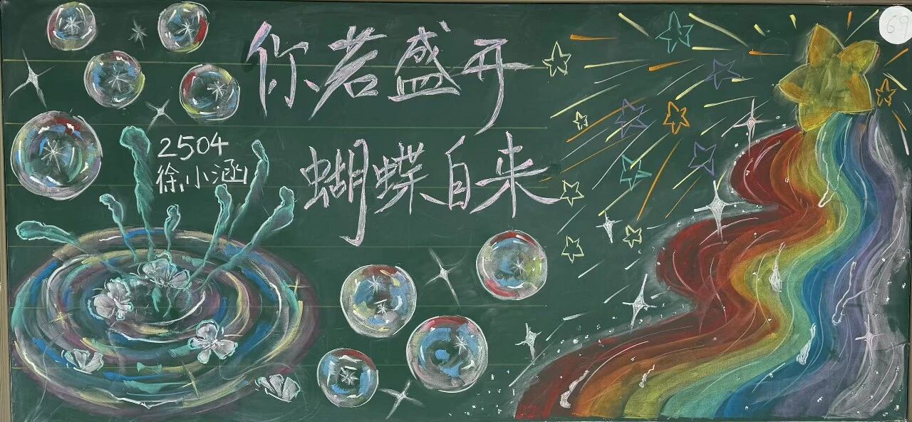 从构思到绘制,从色彩搭配到内容呈现,每一块黑板报都藏着满满的巧思与诚意。既体现了学生们的青春活力,又丰富了校园环境,让我们感受积极向上青春阳光的学习生活氛围,打造了多姿多彩的校园文化体验。让我们携手共进,共同为打造更加丰富多彩的校园文化贡献力量!