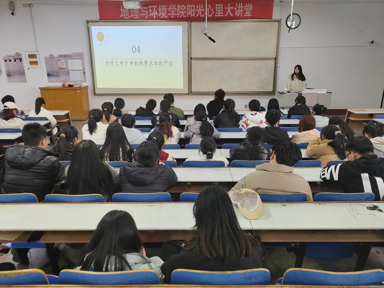 构建心理家园,拥抱美丽人生。本次阳光心理大讲堂聚焦“容貌焦虑”、“身材焦虑”等当下热门心理问题,通过举例特殊案例,帮助同学们解决心理问题,树立正确的审美观念。曹欣欣以“我们如何看待自己的身体形象”为话题导入,引起同学们对身材看法的初步思考。同时,她深入分析不同时代、不同地区对于身材的看法以及人们严格要求身材的原因,为同学们总结出了科学建立身材自信的方法。曹欣欣以谷爱凌为例,阐述了瘦不等于美,美是自信的、健康的言论,鼓励同学们要正确看待自己的身材,了解自身的客观条件,塑造积极阳光的心态。面对同学们的热情提问,曹欣欣凭借自身过硬的心理学知识作出了专业性的解答,同学们纷纷表示会正确对待身材焦虑的问题,提高自身的心理素养。