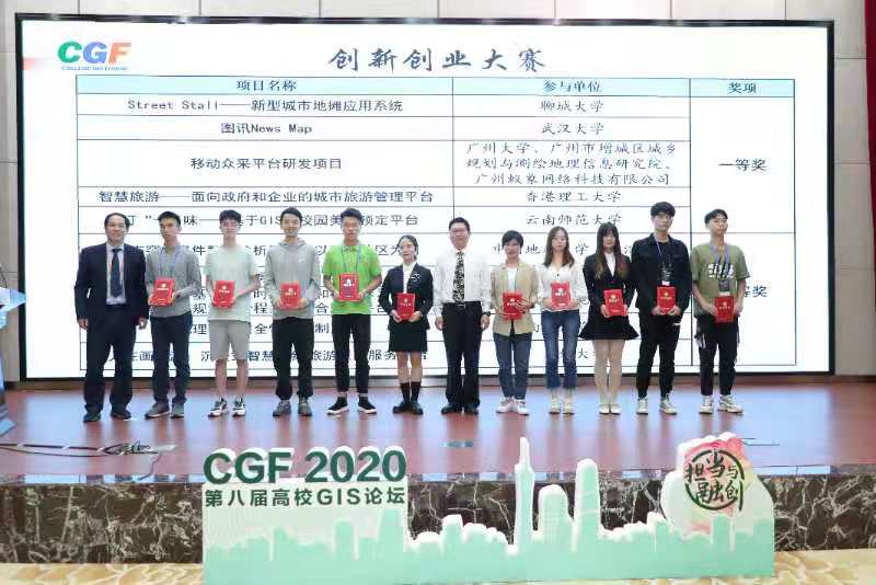 2020年11月7日至11月8日,由国家地理信息系统工程技术研究中心、地理信息系统产业技术创新战略联盟主办,广州大学地理科学与遥感学院及中地数码集团承办,中国地质大学(武汉)、北京大学、武汉大学及清华大学等多所院校协办的2020第八届高校GIS论坛创新创业大赛在广州市华泰宾馆(六层 广州厅)成功举办,太阳成集团tyc33455cc环境与规划学院参赛项目《Street Stall——新型城市地摊应用系统》获得第一名。