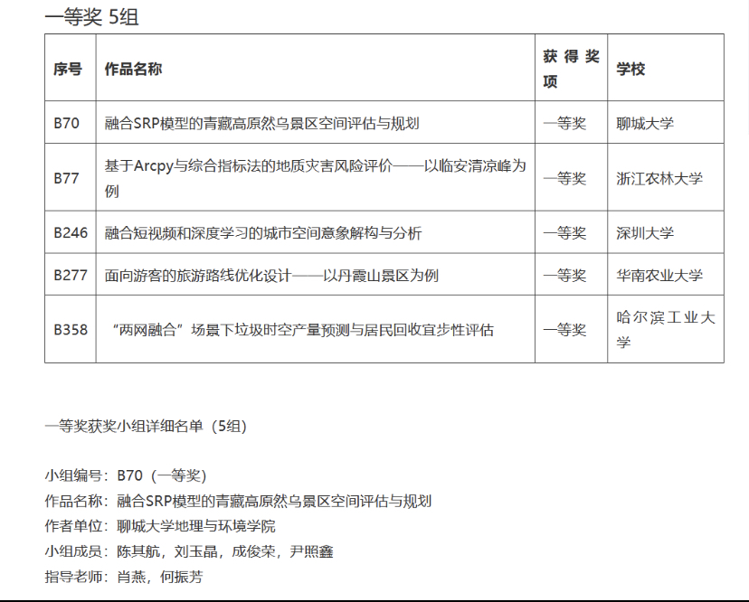 11月2日,由易智瑞(中国)信息技术有限公司主办的“2021年中国大学生GIS软件开发竞赛—地理设计组”公布最终比赛结果。陈其航、刘玉晶、成俊荣、尹照鑫在何振芳、马雪梅老师的指导下,所创作的参赛作品《融合SRP模型的青藏高原然乌景区空间评估与规划》获得最高奖项一等奖。本组比赛共有全国100多所高校参与,超500名师生同台竞技,共提交了100多份参赛作品,3S实验室学子凭借着扎实的理论知识与过硬的专业技能脱颖而出,获得了宝贵的一等奖。