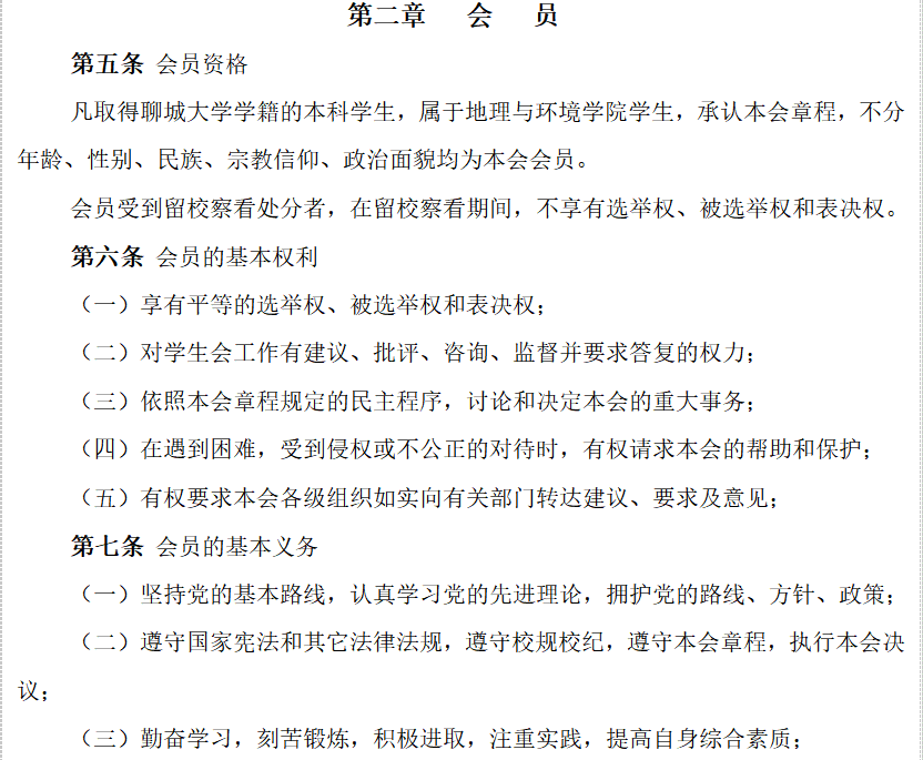 二、《太阳成集团tyc33455cc地理与环境学院学生会章程》