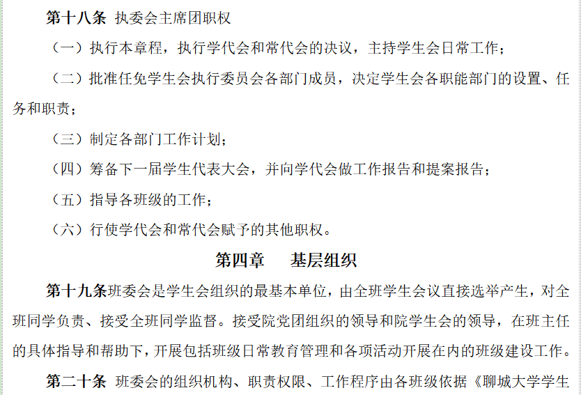 13. 明确1名团组织负责人指导院级学生会组织;聘任团委老师担任院级学生会组织秘书长。 |