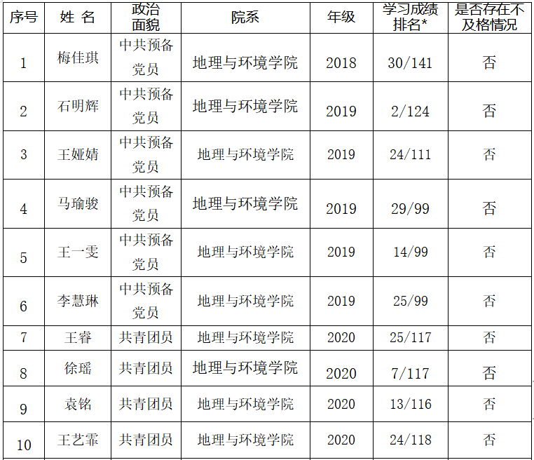 7. 工作人员中除一年级新生外的本专科生最近1个学期/最近1学年/入学以来三者取其一,学习成绩综合排名在本专业前30%以内,且无课业不及格情况。 |
