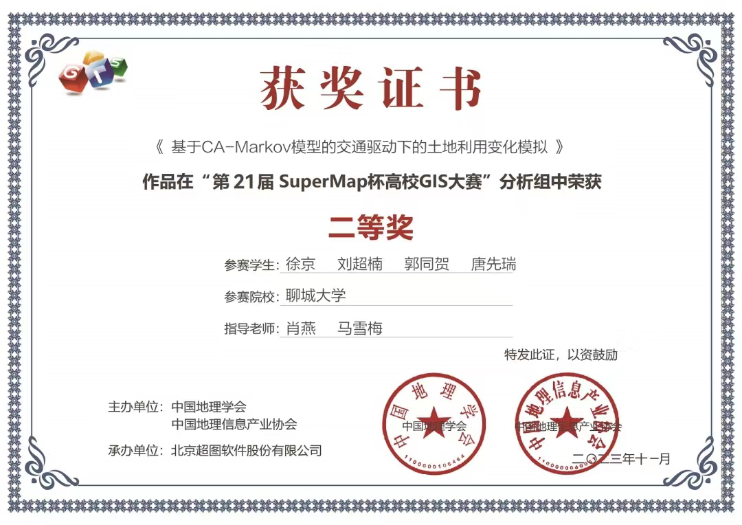 热烈祝贺我院学子荣获第二十一届SuperMap杯高校GIS大赛分析组二等奖