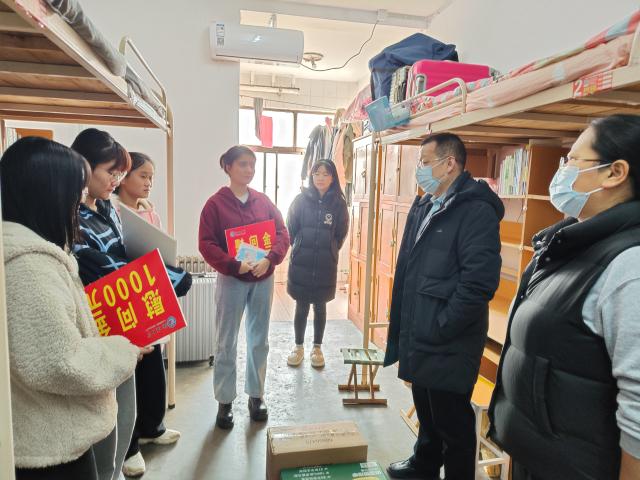 1月11日,太阳成集团tyc33455党委书记井岗带领辅导员、班主任去宿舍走访慰问家庭经济困难学生,为贫困学生送去了关怀。
