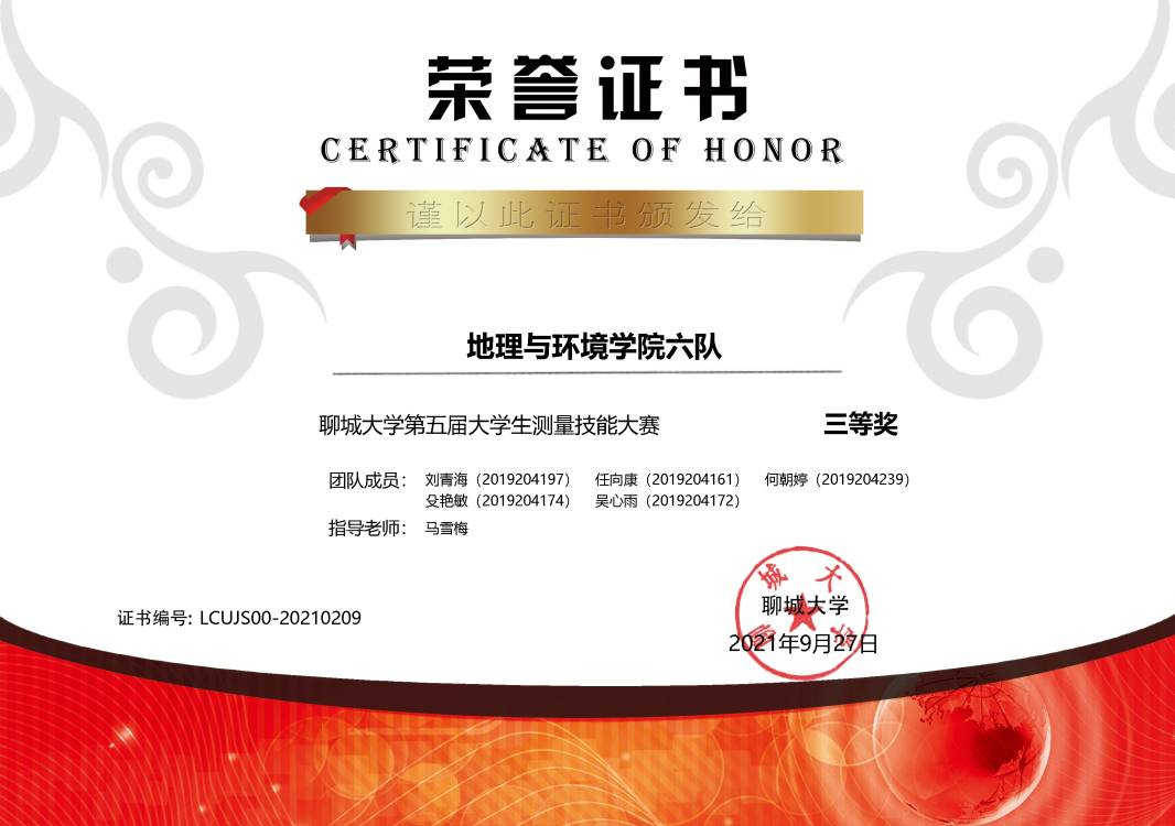 2021年9月27日,太阳成集团tyc33455参加太阳成集团tyc33455cc第五届大学生测量技能大赛,获得三等奖。