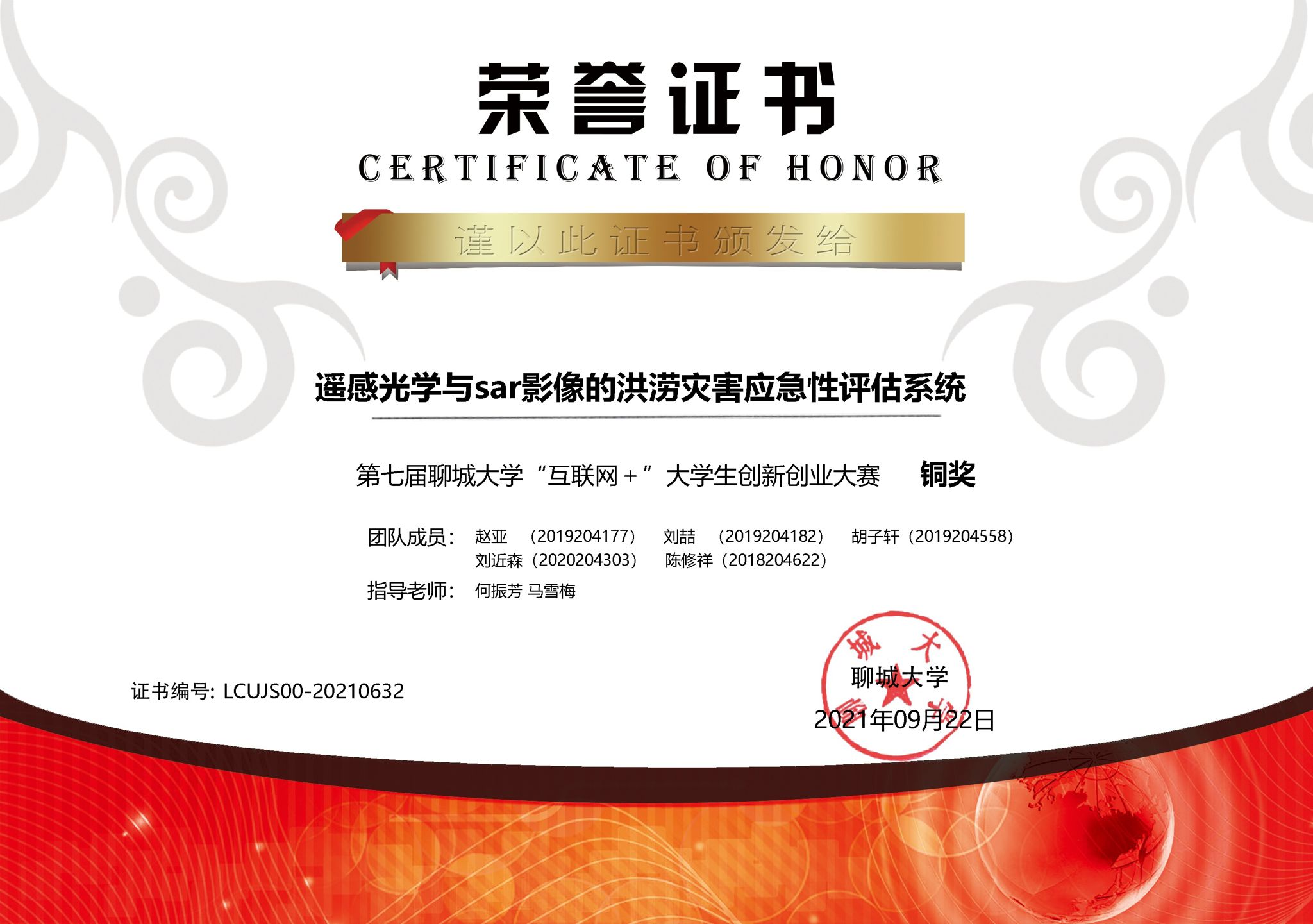 2021年9月22日,赵亚、刘喆、胡子轩、刘近森、陈修祥在何振芳、马雪梅的指导下参加了第七届太阳成集团tyc33455cc"互联网+”大学生创新创业大赛,获得铜奖。