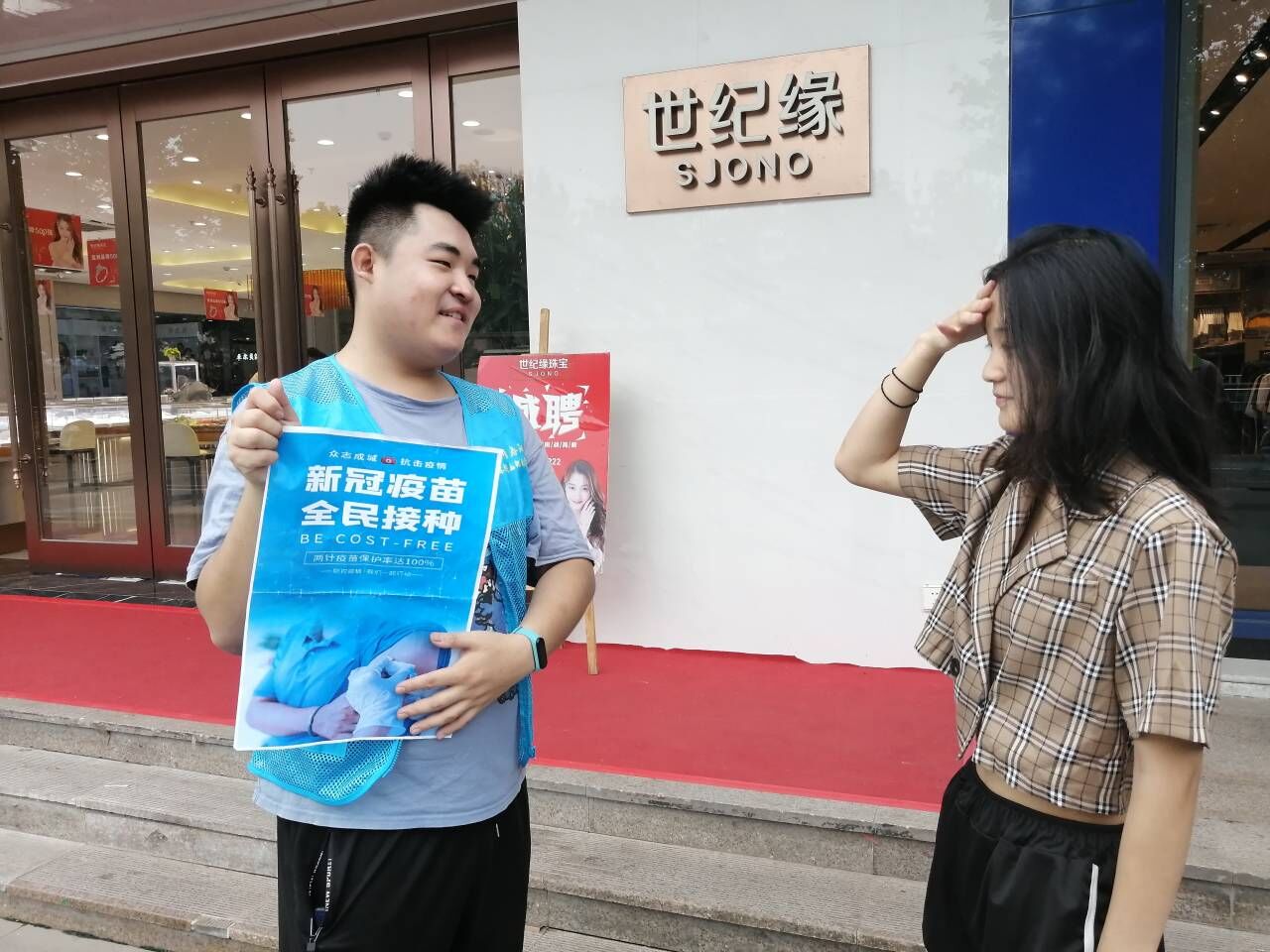 为向广大民众推广新冠疫苗,解读最新的疫情防控政策,科学战疫,理性战疫,7月21日,太阳成集团tyc33455政策宣讲服务队于聊城市东昌府区新东方广场举办了“理性接种 全民战疫”活动。