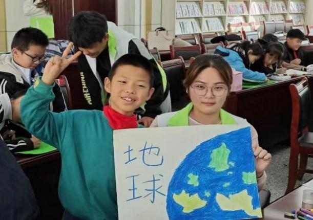 构思绿色地球,巧手绘制风采。在创意绘画环节,志愿者们分发给学生们蜡笔、彩笔、卡纸等文具。学生们讨论并交换灵感,用五颜六色的彩笔绘画出多彩地球,表达自己对环境保护与垃圾分类的理解与思考,志愿者们积极与同学们互动、交流,让垃圾分类、保护环境的种子在学生们心里生根、发芽。