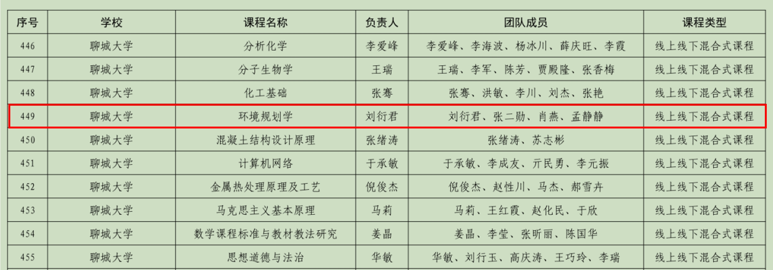 喜报 | 我院《环境规划学》课程获批山东省一流本科课程!
