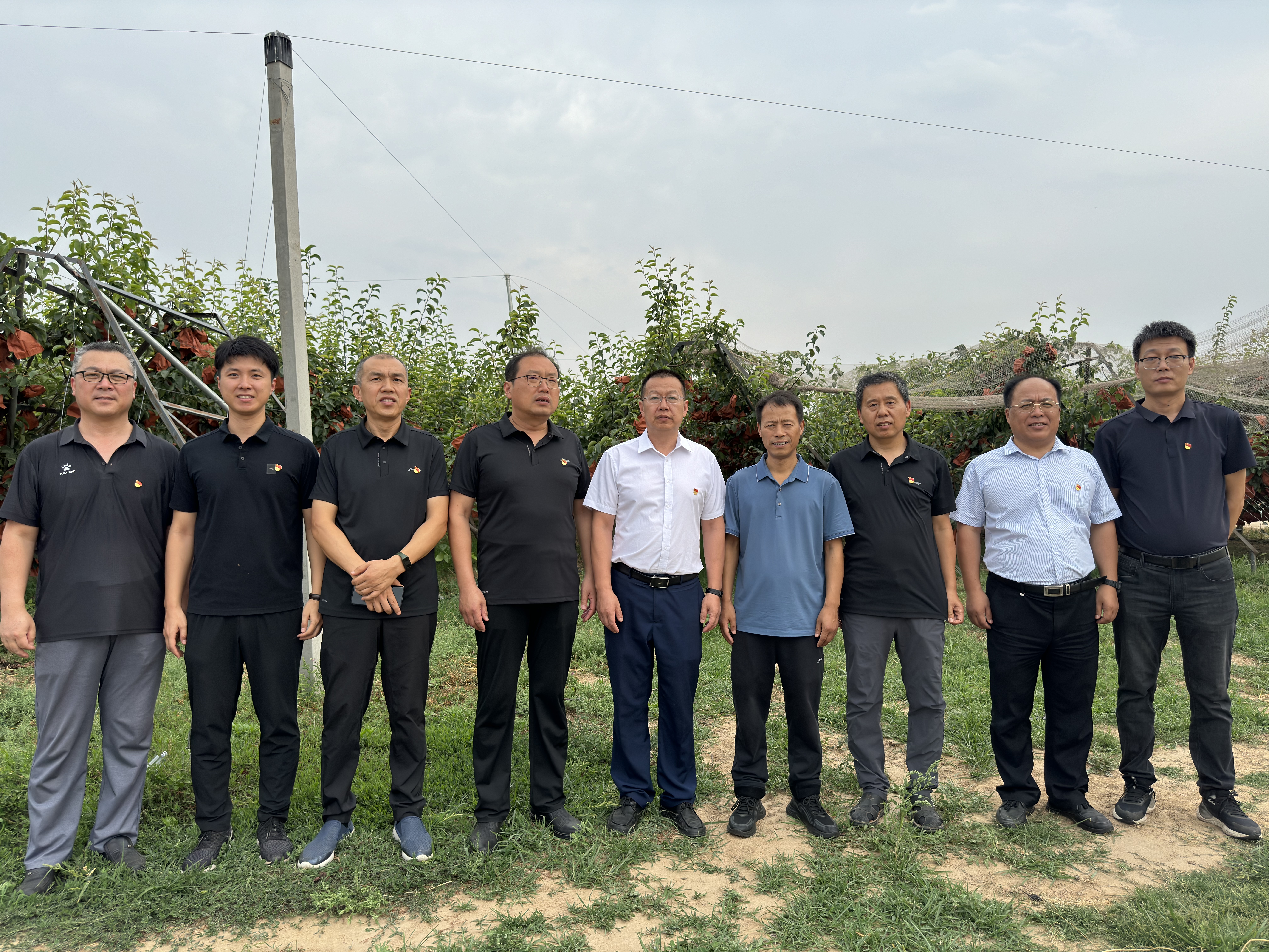 在驻村第一书记张宪涛帮扶的戴里庄村,调研了冠春生物科技有限公司培育基地,实地考察了冠优酥梨组织培育、幼苗生长和产品销售情况,并就产业发展和双方合作进行了交流。