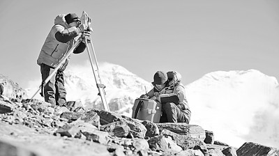 国测一大队在进行珠峰高程测量。 资料图片
