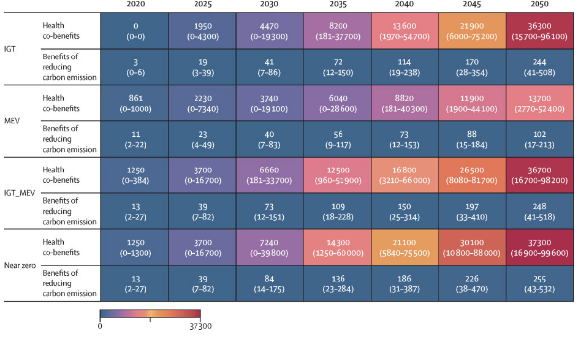 研究成果以“城市交通脱碳的协同效益的情景分析(Scenarios of demographic distributional aspects of health co-benefits from decarbonizing urban transport)”为题,2022年6月14日发表于《柳叶刀-星球健康》(The Lancet Planetary Health )。