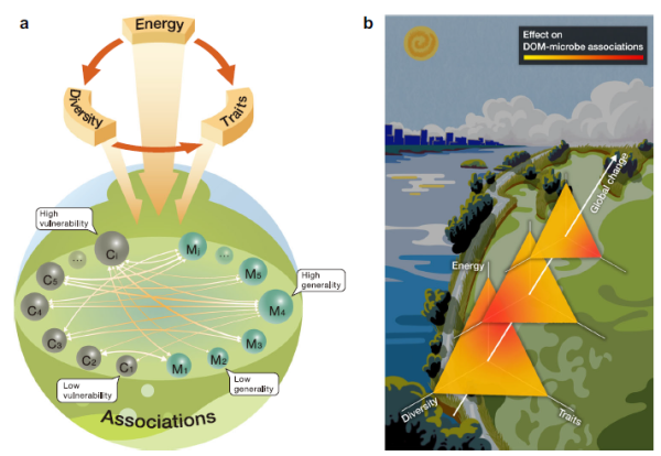 溶解性有机碳是水生生态系统中最大的碳库之一,其分子构成和周转动态受到微生物的调控,具体表现为微生物通过降解和生成作用影响有机碳分子的多样性,并在此过程中形成有机碳分子性状,包括分子量和生物可利用性等,这些性状决定有机碳的归驱。同时,有机碳作为微生物新陈代谢的能量和碳源,影响微生物群落的组成、多样性和功能。相关的科学问题包括如何量化自然界中有机碳和微生物之间的耦联关系,以及这一关系如何受到气候变化和人类活动等全球环境变化的独立和交互影响。