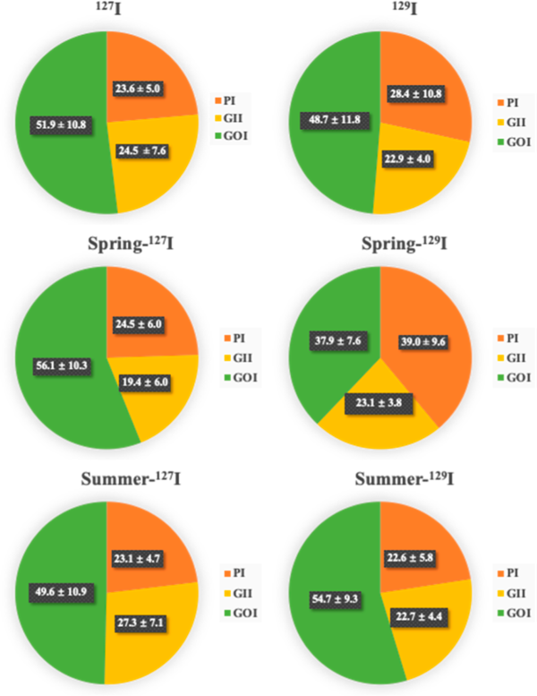 近日,中国科学院地球环境研究所环境放射性团队在前期大气颗粒态碘研究基础上,进一步自主设计研发了大气碘同位素形态串级采样器,筛选超低本底采样基质,优化燃烧程序、捕集液参数,分离环境大气中颗粒碘、气态无机碘和气态有机碘,并采用加速器质谱技术和ICP-MS测量技术,建立了超灵敏环境大气中的129I和127I形态的分析方法。该方法成功应用于2020年5月至8月西安城市环境大气中129I和127I的水平和形态研究。结果表明,研究区大气中129I和127I主要以气态有机碘为主,约占总气碘的50%,而气态无机碘和颗粒态碘各占25%。此外,研究初步发现了129I和127I的形态转换可能发生在春夏交替之际,并以颗粒态碘和气态有机碘的相互转化为主。该研究对采用129I精准示踪大气碘循环过程具有重要意义。