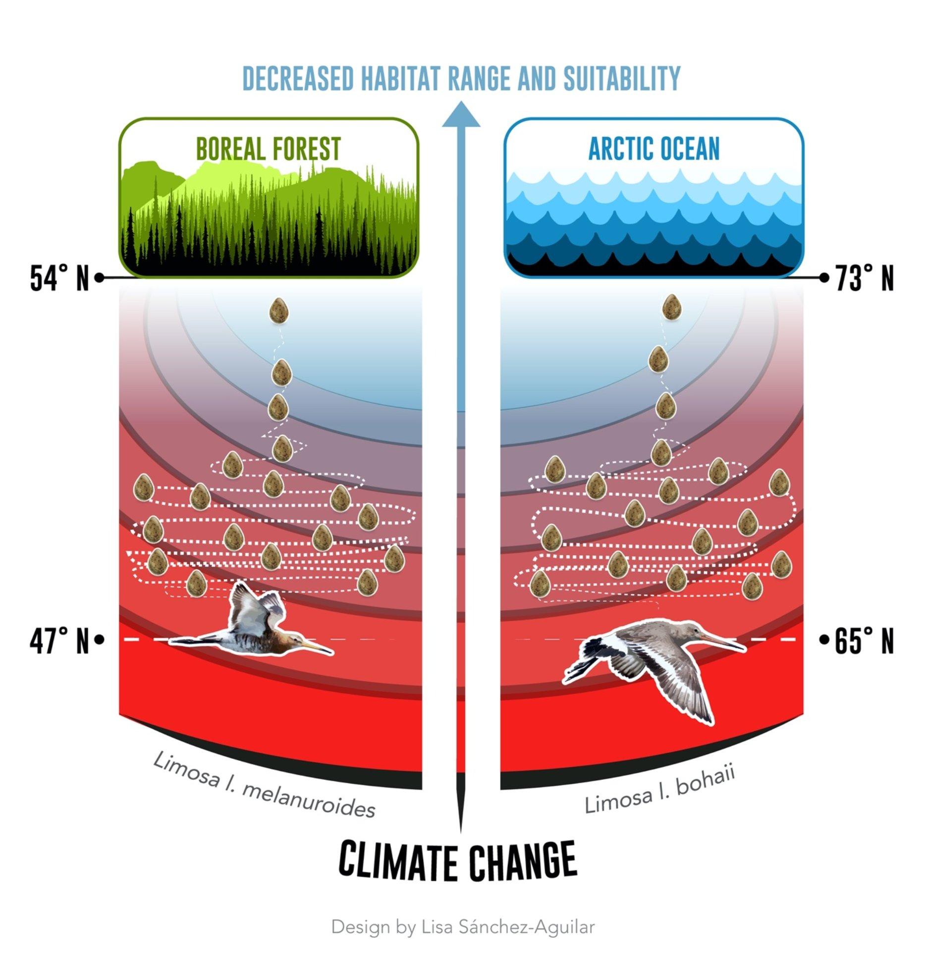 在气候变暖的情景下黑尾塍鹬渤海亚种和东方亚种的繁殖地均会向北移动