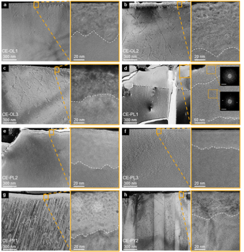 图2.嫦娥五号矿物表层显微结构的TEM图