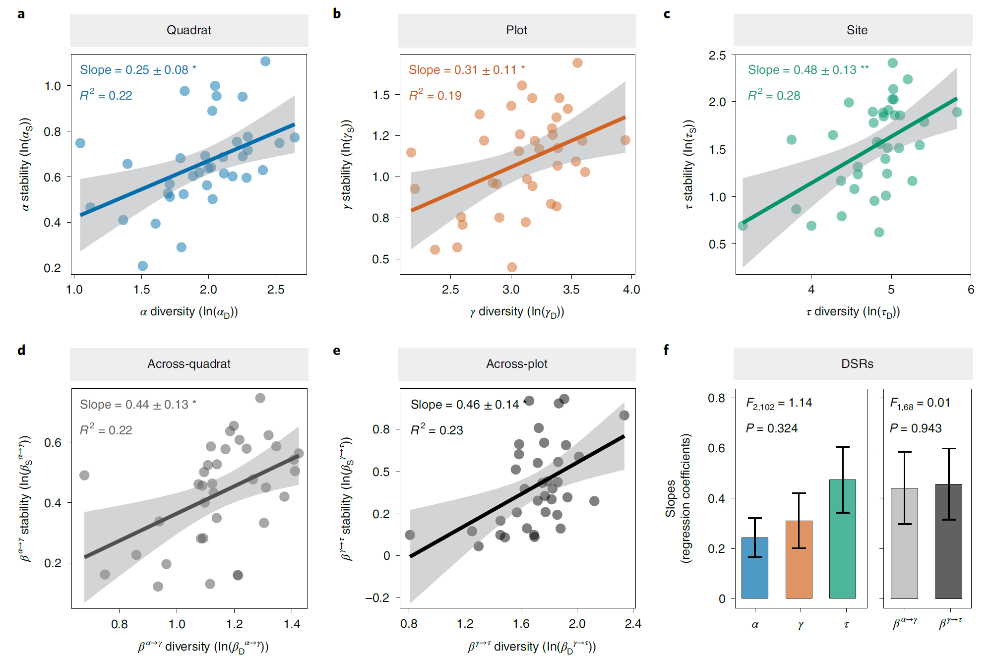 北京大学城环学院王少鹏研究组在《自然•生态与进化》发表论文揭示生物多样性的多尺度稳定化作用