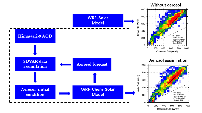RS: 同化葵花-8号气溶胶观测提升WRF-Chem-Solar模式对我国晴空太阳能的预报精度