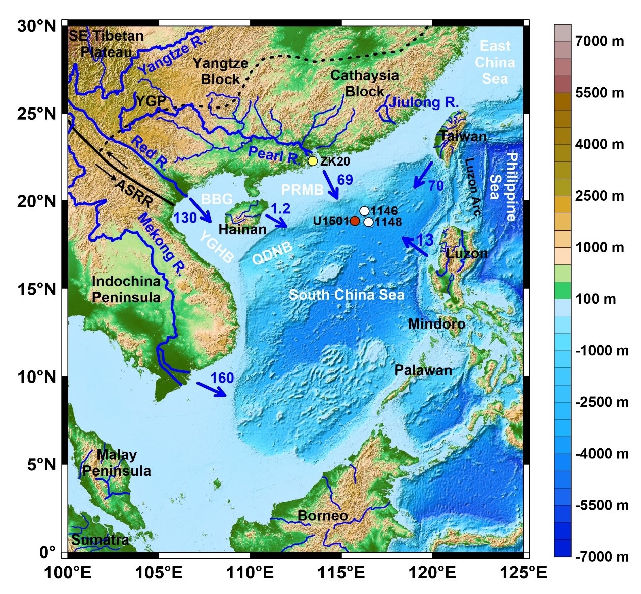 研究人员通过南海北部的陆源碎屑沉积记录约束了过去3500万年以来研究区沉积物物源演化,揭示类似现代规模的珠江流域形成于约三千万年前,源于青藏高原东南部隆升和中国东部地形倒转。