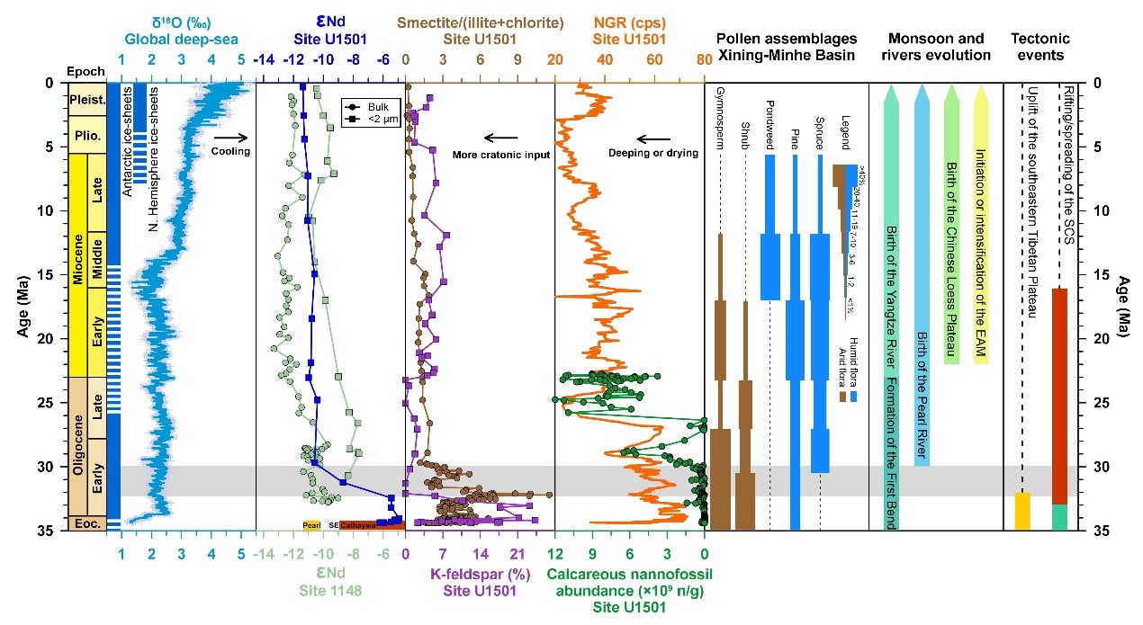 本研究基于南海北部晚始新世约3500万年以来长期、连续且高分辨率的沉积记录,在国际上首次精确限定了珠江的发育和形成历史,明确了高原隆升驱动了珠江演化,对于加深理解新生代构造作用如何控制边缘海沉积环境演化和陆上河流形成演变具有重要意义。