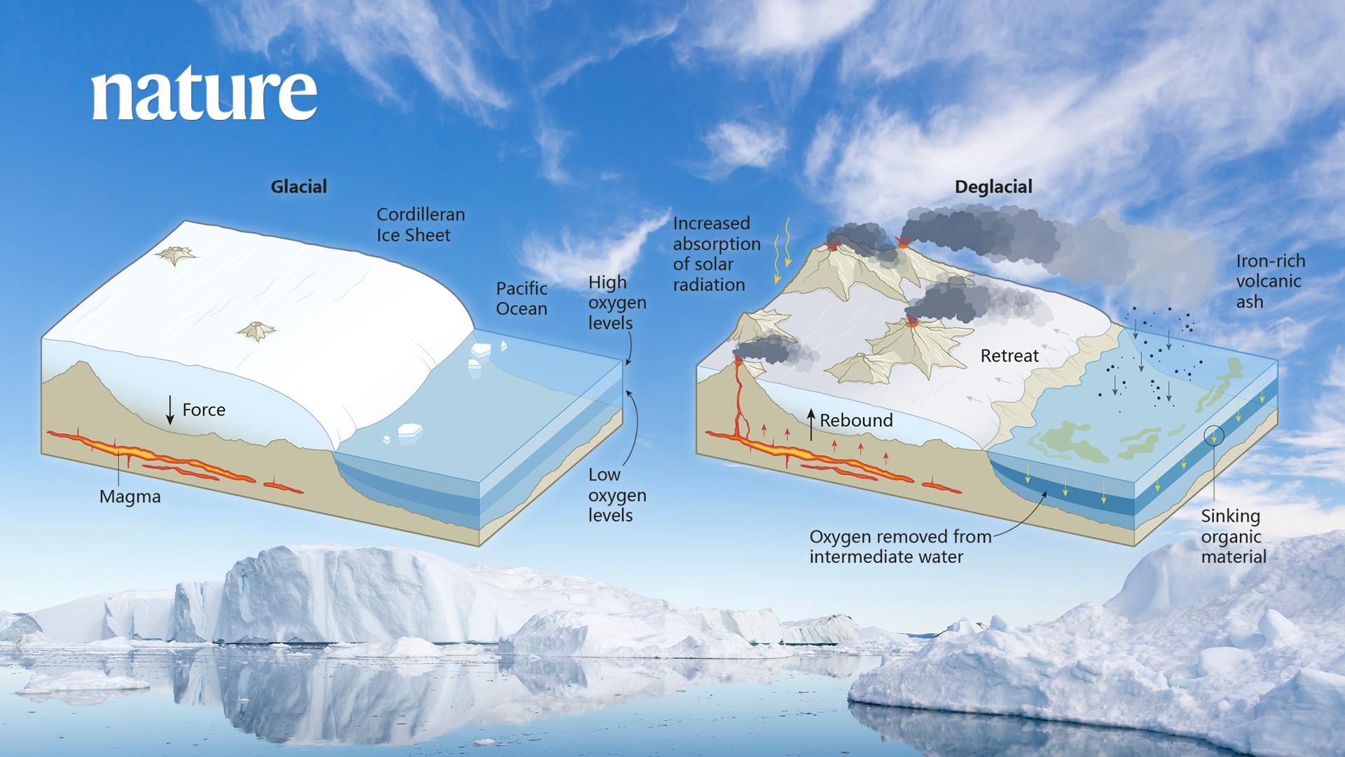 近日,南方科技大学海洋科学与工程系副教授姚炜琪在国际学术顶级期刊Nature发表题为“Glaciers-sparked volcanism harmed ocean health”的科学视点文章。针对末次冰消期科迪勒拉冰盖消融引发短暂火山活动以及持续数千年海洋死区的观点发表重要分析与评述,并对全球变暖情景下的海洋脱氧研究前景进行了展望。