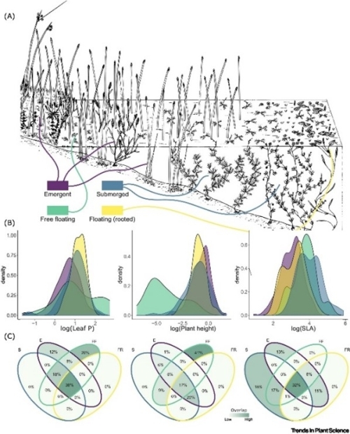 图1.水淹梯度上植物的生长型与功能性状表达的变异(2022 Elsevier Ltd.)
