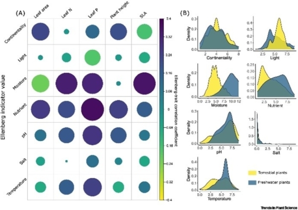 图2.水生植物功能性状表达对其所处环境的指示作用(2022 Elsevier Ltd.)