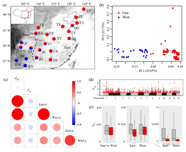 图1 麻栎的地理分布,群体结构和基因组变异模式。