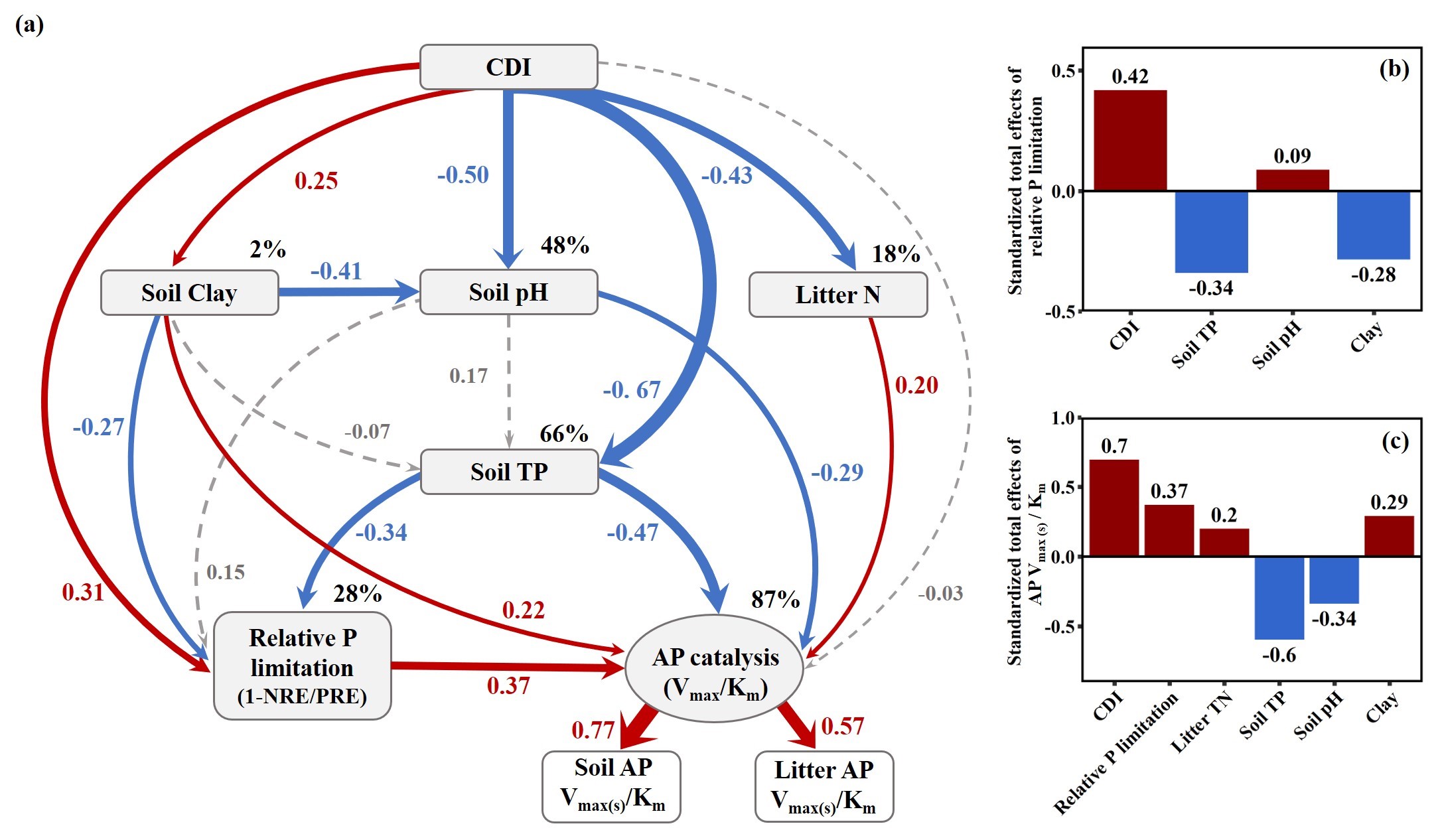 气候、凋落物、土壤和植物相对磷限制对酸性磷酸酶催化效率的影响